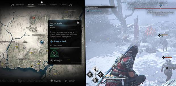 La línea de misiones de El Buey puede comenzarse tras haber terminado el acto 1 de la historia principal. Cuando ya tengas acceso a Yasuke, puedes viajar a la región de Harima para ir a buscar al abad, que se encuentra en el templo Myoyoji del monte Tanjo, en la zona de Campos bélicos de donde te señalamos a continuación: