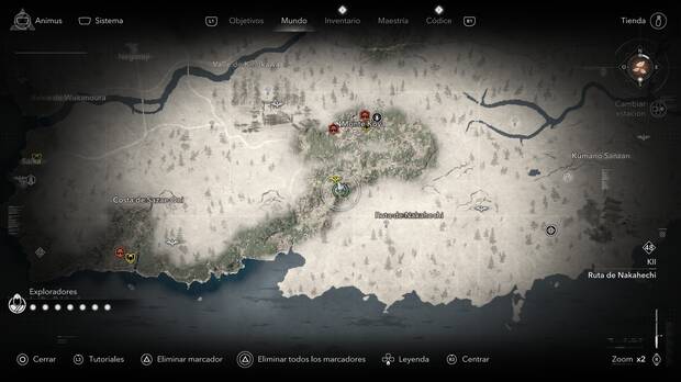 Para encontrar al sumi-e de la Grulla manchú legendaria debes dirigirte a un lugar sin nombre que recuerda a una aldea abandonada al sur del arco de Sotomo, justo donde te señalamos aquí debajo: