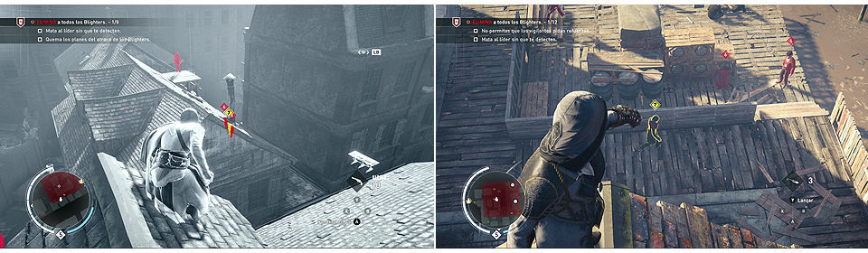 Los enemigos marcados con el ojo son vigilantes que al detectarnos pedirán refuerzos, hay que evitarlo matándoles lo más rápido posible y en sigilo.