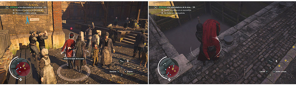 Marx teme que hagan un boicot a su discurso, para evitarlo tenemos que secuestrar a los alborotadores, en este recuerdo tenemos que ser completamente anónimos, si nos descubren matarán a Marx, hay varios enemigos y bastantes policías, hay que evitar como sea que nos vean, al ir eliminando a los enemigos también hay que tener cuidado con que los policías no descubran los cuerpos, con estar lejos de los cuerpos nos vale aún así.