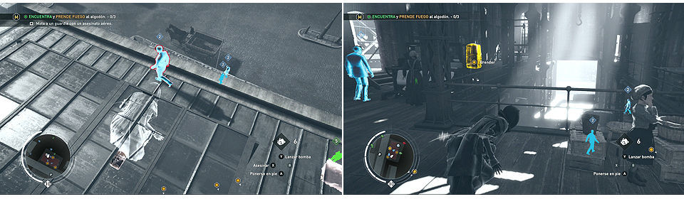 Marx quiere que entremos en una fábrica para echarle un vistazo a los informes, tenemos que entrar y quemar 3 pilas de algodón, para hacer salir a todo el mundo. Aquí tenemos el Desafío, hay que matar a un vigilante con un asesinato aéreo, en el tejado podemos realizarlo fácilmente desde la cristalera abierta al guardia que patrulla por el tejado.