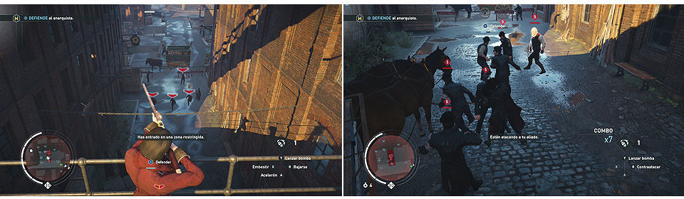 Cuando lleguemos hasta el destino un grupo de enemigos nos ataca, hay que proteger al anarquista, cuidado ya que no resiste demasiado hay que eliminar a los enemigos rápìdamente.