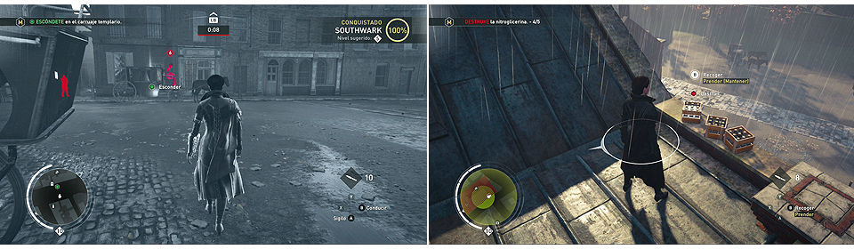 Escóndete en el carruaje templario / Destruye la nitroglicerina