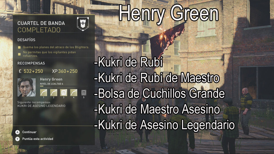 Para subir la afinidad con Henry Green, podemos completar Cuarteles de Bandas y Cazas de Templarios.