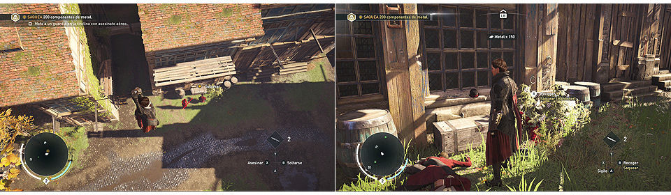 Una vez consigamos instalar los 3, Graham Bell nos encomienda encontrar materiales para crear 2 objetos, nos señalizan dos cofres custodiados por Blighters donde podemos encontrar los materiales, aquí es muy sencillo cumplir el segundo desafío, usamos el gancho para asesinar desde arriba a cualquier enemigo y lo cumplimos, desarrollamos los objetos que nos pidan y volvemos al taller de Alexander.