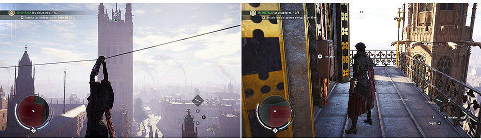 Esta misión es prácticamente un tutorial del gancho, pero tenemos como objetivo extra dos bastante interesantes. Tenemos que llegar hasta el Big Ben e instalar los dispositivos de Graham Bell, están en 3 zonas elevadas, para completar el primer desafío no podemos bajar de 30 metros una vez instalemos el primero, con el gancho nos será bastante sencillo, los guardias que hay por los tejados son de nivel alto así que lo mejor es no enfrentarse con ellos.