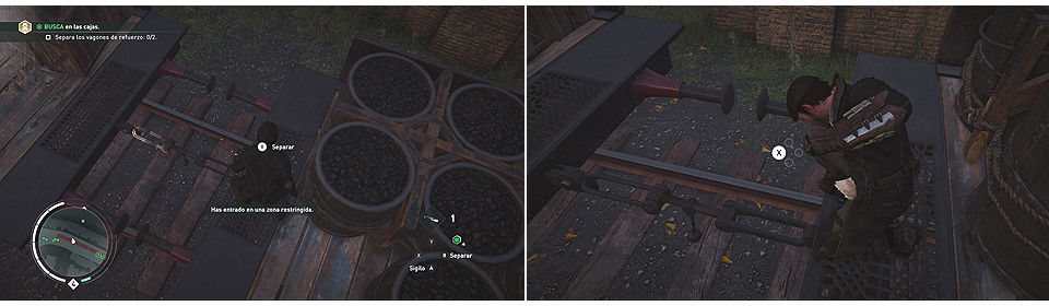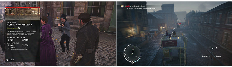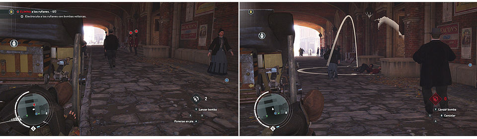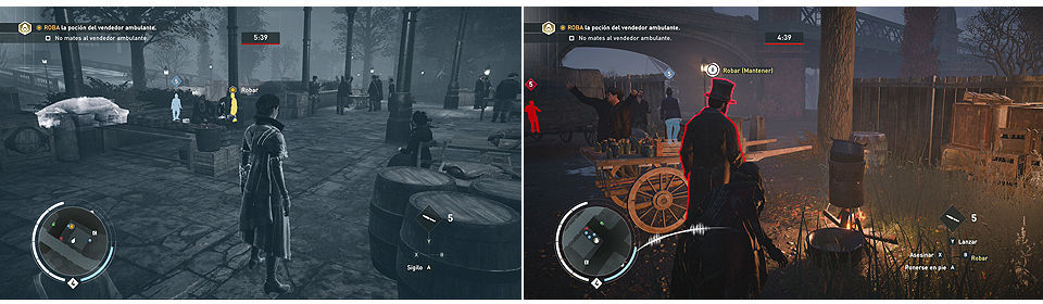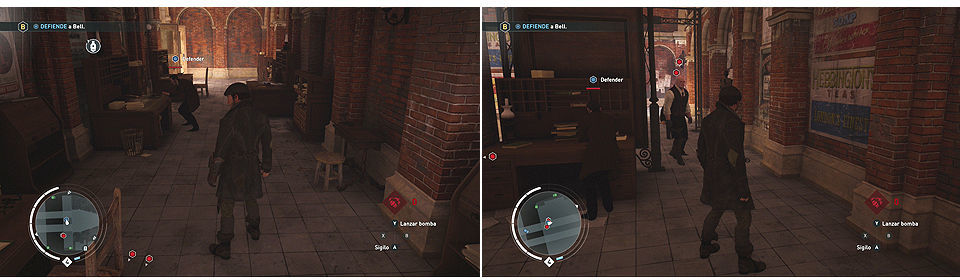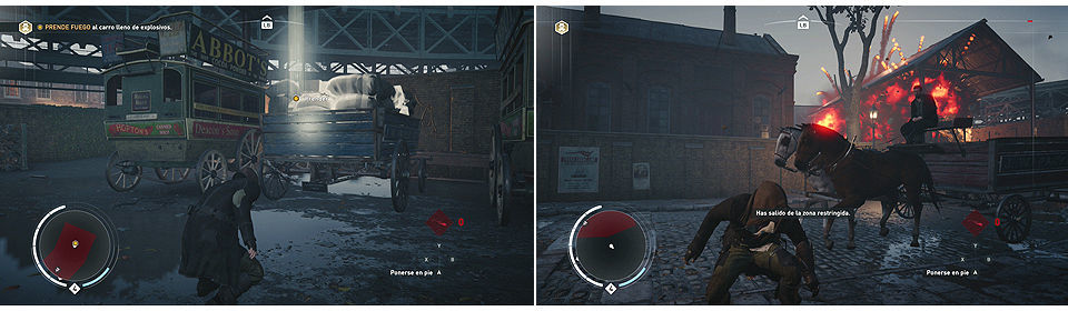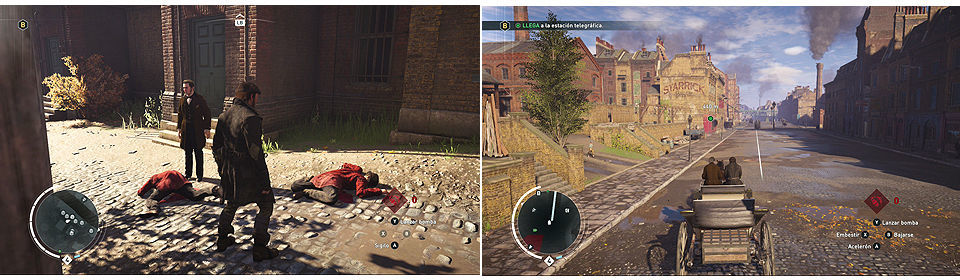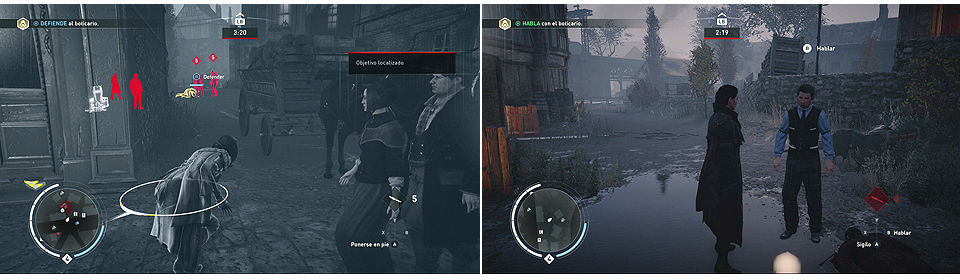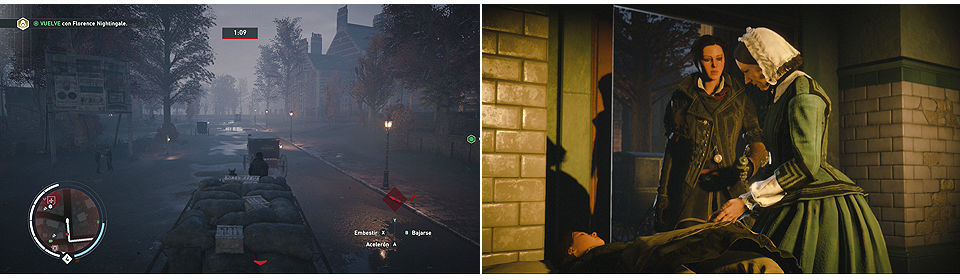 Ahora tenemos que localizar al Boticario, cogemos un carruaje y nos dirigimos al marcador a toda velocidad (el tiempo sigue corriendo), le encontramos rodeado de Blighters que le están atacando, aquí lo más importante es matar a los enemigos lo más rápido posible, un par de dardos alucinógenos y lanzamiento de cuchillos, en cuanto liberemos al boticario este nos informa que estos suministros son para Nightingale, pero justo un Blighter lo roba.