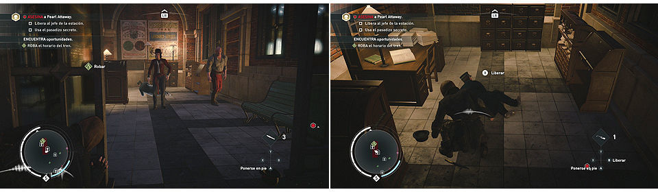 Para liberar al jefe de la estación, tenemos que dirigirnos arriba por las escaleras cercanas al revisor del tren, si hemos hablado con él, el jefe de la estación esta en la sala al lado de los horarios del tren custodiado por 2 enemigos.
