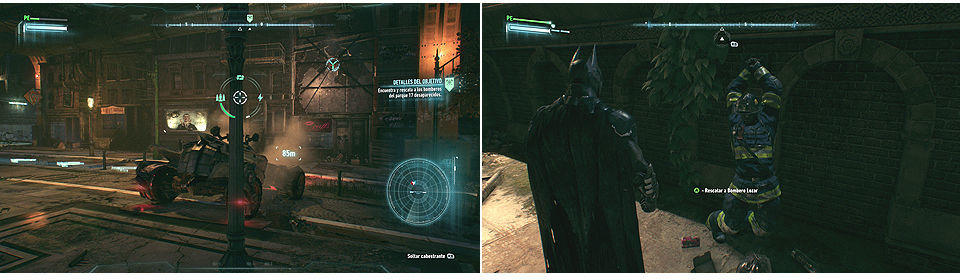 Para llegar a este Bombero hay que usar el Batmóvil y el cabestrante para llegar hasta él ya que esta en los subterráneos.