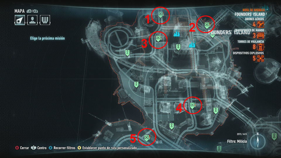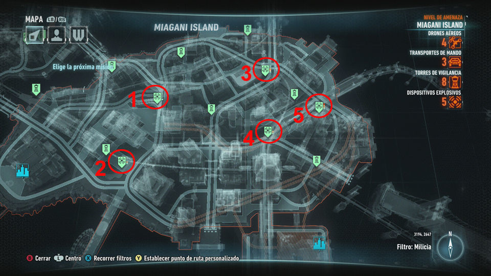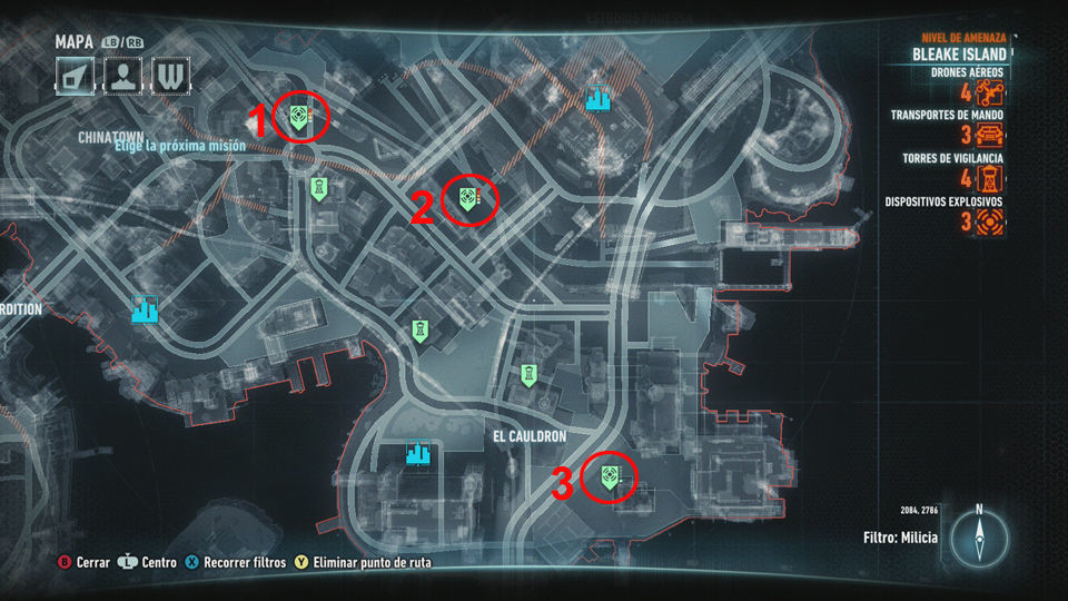 Encunentra y destruye todos los explosivos instalados por la milicia. Esta misión secundaria salta cuando estamos siguiendo el rastro del coche que secuestro a Oráculo usando el escaner forense, aquí hacemos la primera de Bleake Island.