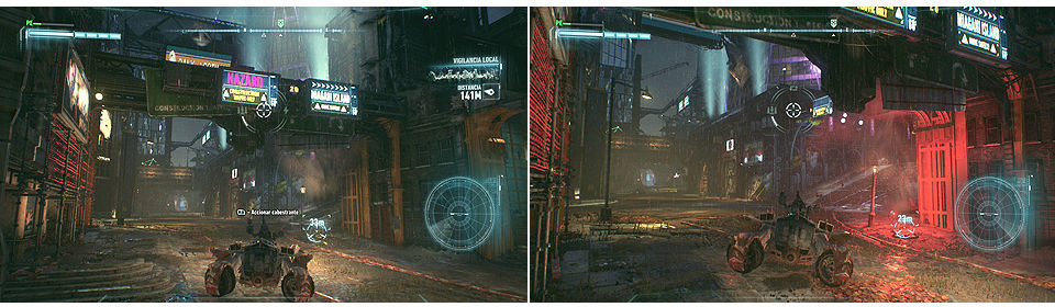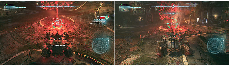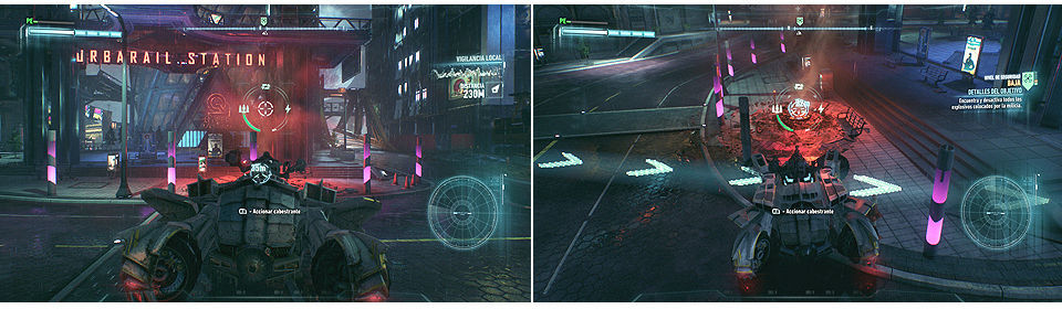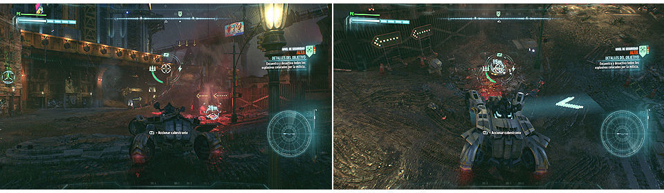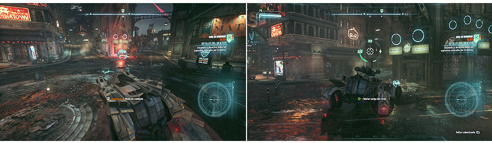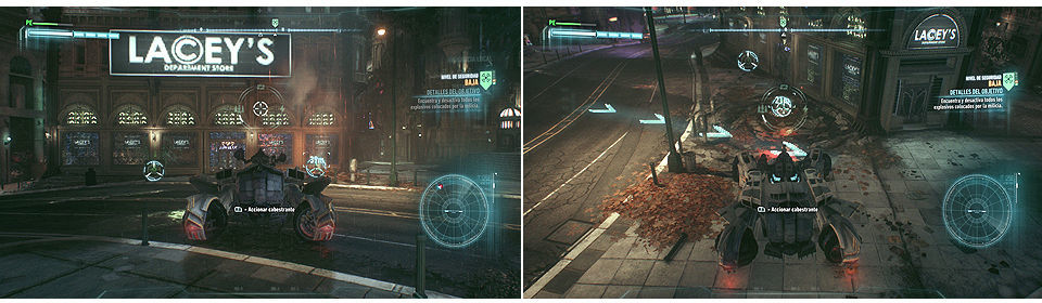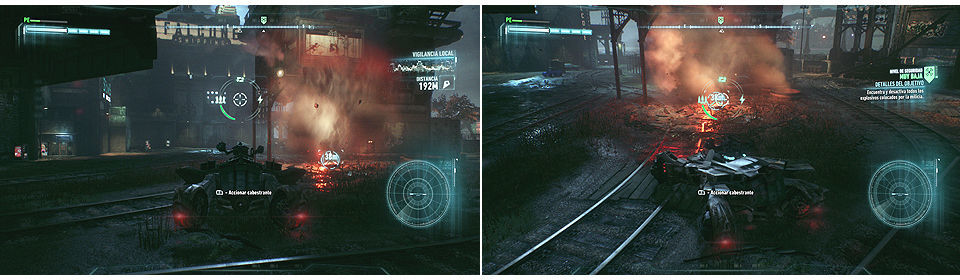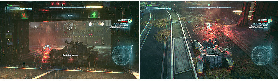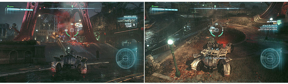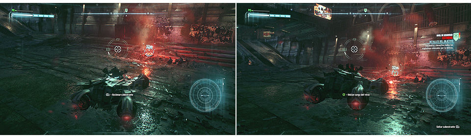 La milicia ha colocado explosivos por todo Gotham, necesitamos el cabestrante del Batmóvil para colocar el virus, pero según lo hacemos oleadas de Drones vendrán al lugar, en estas batallas nos limitan el escenario para no separarnos demasiado del explosivo, cuidado o detonará, una vez acabemos con todos hay que usar el cabestrante y revolucionar el motor.