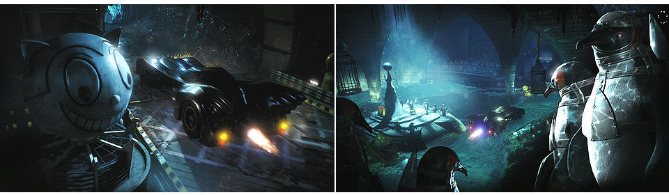 Al comienzo de la carrera tenemos varias curvas, luego un túnel, donde saldrán vehículos pato donde iba montado el pingüino en la segunda película de Batman (Tim Burton), en esta primera vuelta todos los Patos van por la izquierda, continuamos por la derecha hasta pasar el Looping, saltamos hacia un túnel con 3 aspas (en esta primera vuelta no se mueven), llegamos a las alcantarillas donde tiene su guarida el Pingüino, hay que avanzar por la derecha y subir por la pared para no caernos, seguimos en la recta y el puente se destruye primero por la derecha y luego por la izquierda tras doss altos termina la primera vuelta.