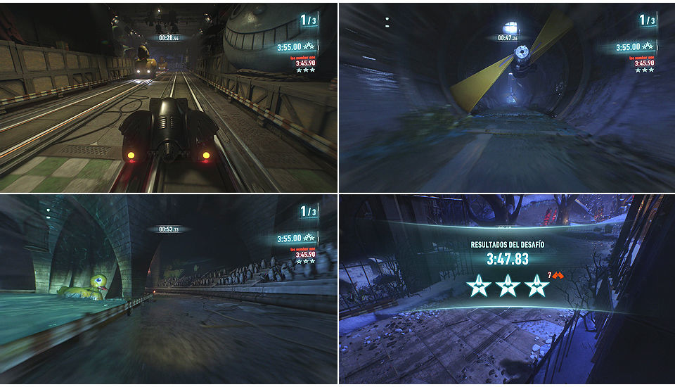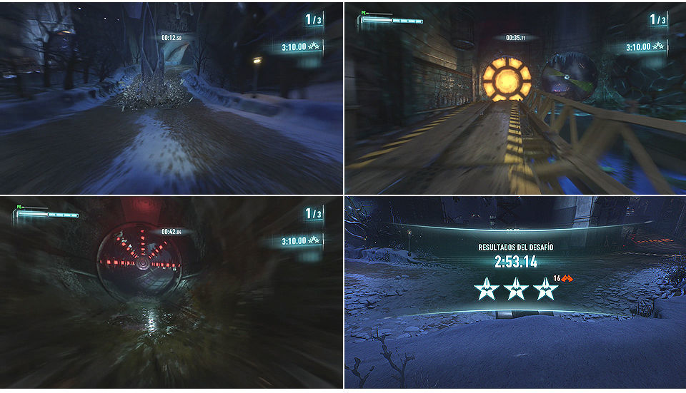 En las primeras curvas nos sale hielo del suelo, hay que esquivarlo, entramos en una curva que hay que ir por la izquierda subidos por la pared, tras ella llegamos a una recta donde hay que saltar bien para atravesar el túnel con cuchillas y luego ir por la izquierda moviendo las puertas para poder pasar.
