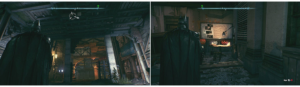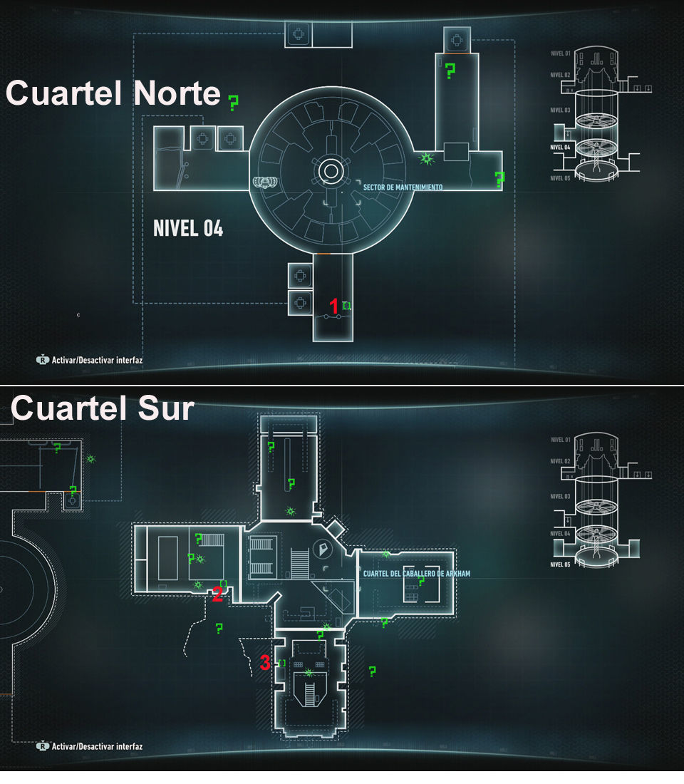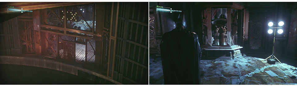 La sur es donde luchamos contra el Caballero de Arkham para salvar a Gordon y s eentra desde lo alto del edificio cogiendo el ascensor (2556, 1653).