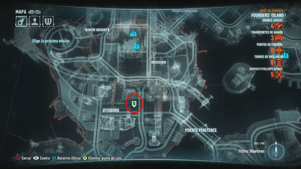 Evita que Dos Caras y sus secuaces atraquen los bancos de Gotham. Completando esta misión obtenemos 7 puntos de mejora. Esta misión nos la dan justo antes de recibir la mejora del Sonar en el modo Historia para ayudar a Hiedra a despertar las plantas.