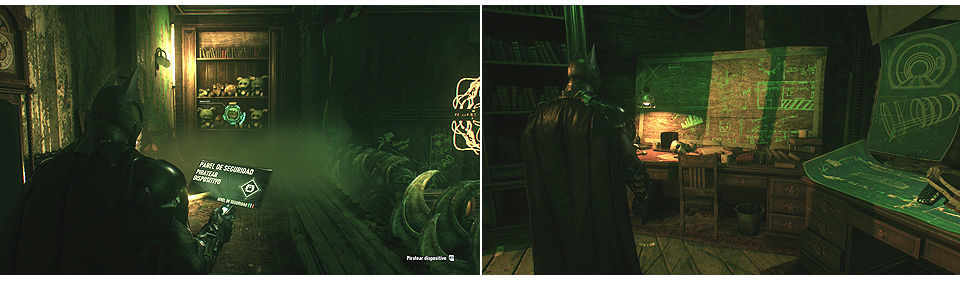 No cuesta sin duda domar a un felino. Vístelo así y el murciélago irá a su destino. Hay que escanear el collar explosivo que Enigma le ha puesto a Catwoman, si ya la hemos rescatado, lo encontraremos en donde se lo quitó en la prueba final (Final Exam), en el suelo al lado del fluorescente, zoom y escaneo.