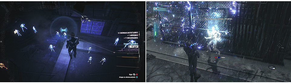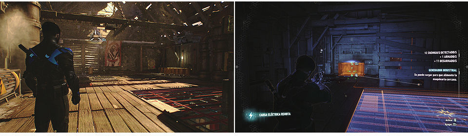 Al comenzar el capítulo aparecemos en el almacén de Blüdheaven, por la rejilla vemos a hombres del Pingüino pero no podemos bajar, la rejilla tiene una persiana de seguridad, para poder bajar hay que activar los 3 generadores que tenemos en la zona usando la Carga Eléctrica Remota, hay que hacerlo muy rápido o no lo conseguiremos, desde una posición que vamos bien los 3.