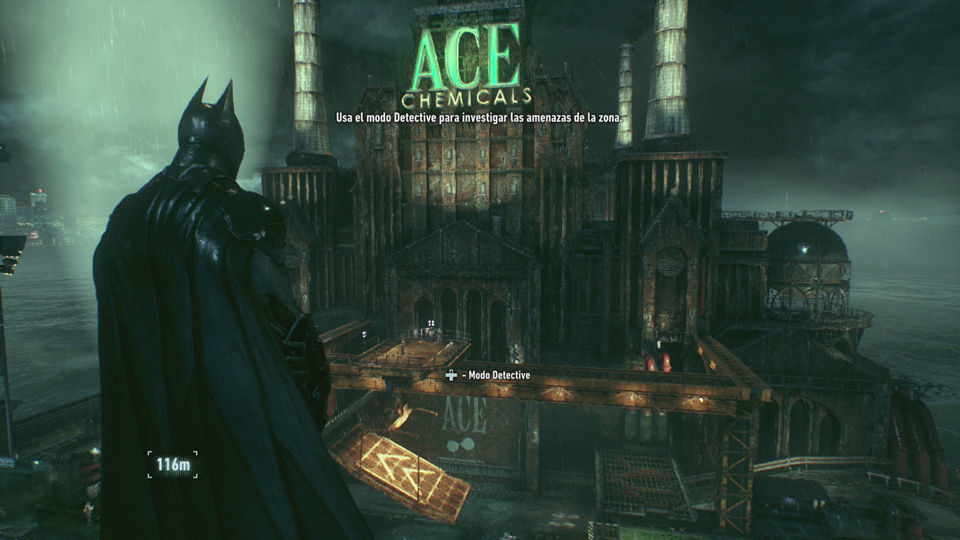 Tras la secuencia controlaremos brevemente al comisario Gordon en los estudios Panessa, veremos a 4 infectados con la toxina, rápidamente volveremos a controlar a Batman y tenemos que huir a toda prisa de Ace Chemicals antes de que explote.