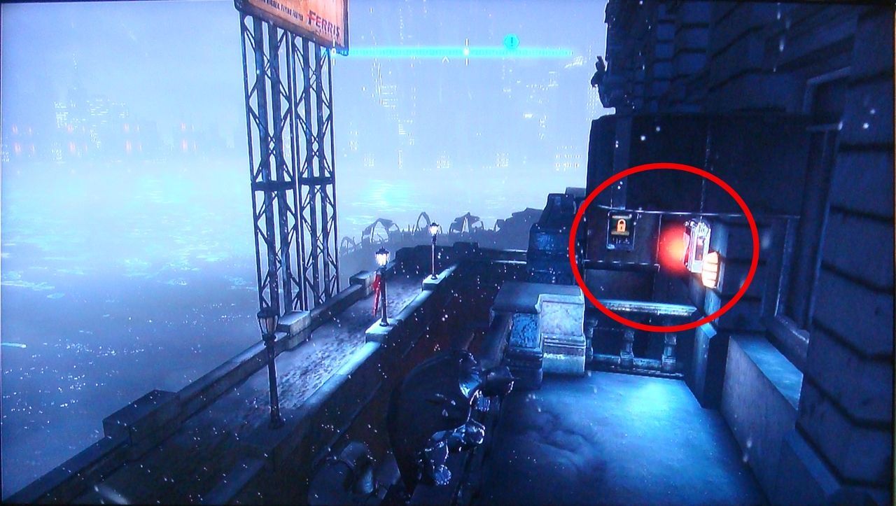 #1-7. Usa la batgarra para subirte al cartel y cogerlo desde allí.