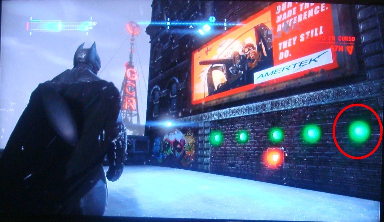 #1-8. Cuando estén todos iluminados, golpea el interruptor verde de más a la derecha con el batarang.