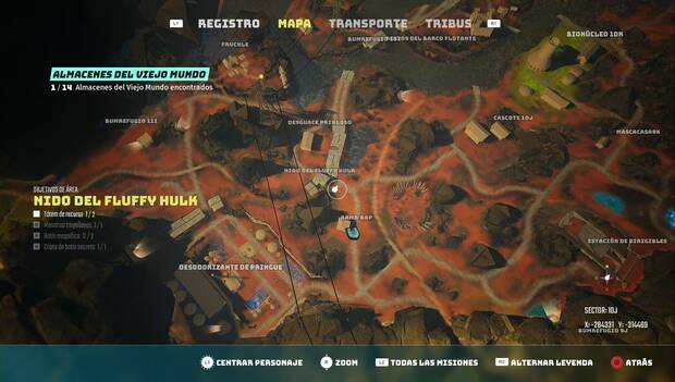 Para ir a por el duodécimo almacén, dirígete al extremo norte, al noroeste de Baserráfaga (Sector 10M, X: -278269, Y: -461719).