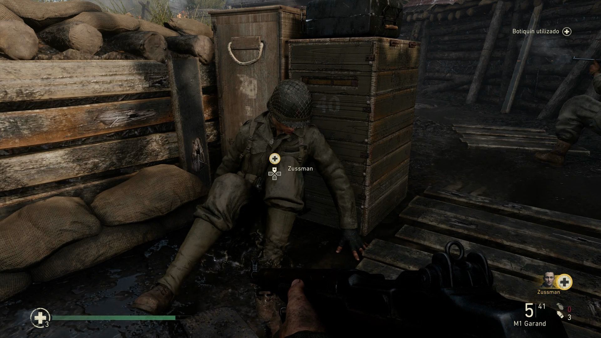 Esto botiquines se pueden conseguir recogiéndolos de los escenarios, o pidiéndoselos a un médico. A lo largo de la aventura, dependiendo de la misión y las circunstancias, podremos tener compañeros de pelotón a lo que podremos pedir ayuda. Por ejemplo el médico, Zussman, quien nos lanzará un botiquín cuando lo necesitemos.