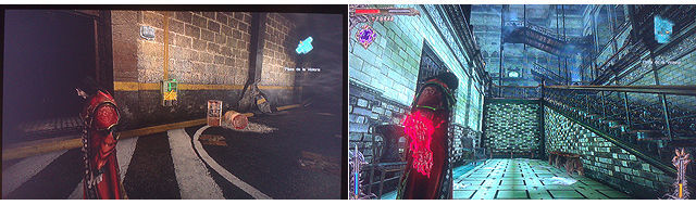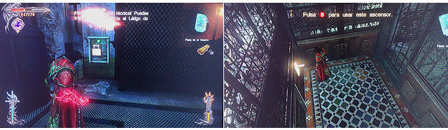 ---Caja de Dolor 11 - Gema de Vacío. Desde la posición de la Pila del sacrificio en la tercera planta del edificio con ascensores, podemos subir por el hueco del ascensor por unos enganches, desde aquí usando las Alas Demonícas llegamos a la caja.