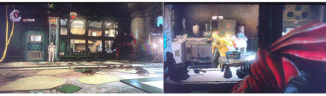 Tras recoger todo lo anterior volvemos a la sala donde vimos al Antidisturbios y el Memorial y nos tiramos a la plaza (podemos paralizar la Mina por un rato tirándole una Daga de Sombra). Al bajar nos atacan varios Antidisturbios y Ciudadanos Poseídos, una vez muertos al fondo cerca de un coche vemos unos enganches para cruzar el muro que nos bloquea el paso.