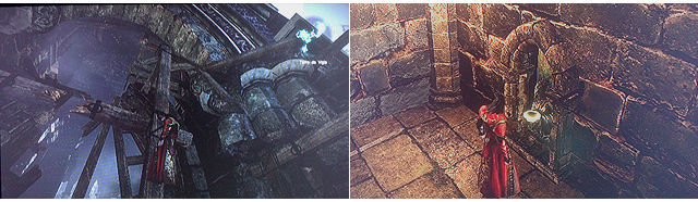 Salimos a una zona amplia con un puente por la derecha, al fondo se ve una caja de dolor que no podemos coger, según subimos por la derecha las escaleras encontramos un caballero con un Diario (Final de Andreas Aloisius), en el puente nos atacan varios Caballeros de la Hermandad y un Guerrero Pesado, llegamos a otro mecanismo con forma de caballero y entramos en un jardín.