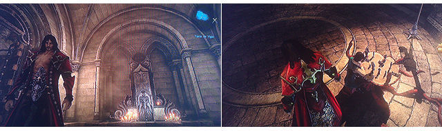 Entramos en el edificio, a la derecha entramos en una sala con un mecanismo en forma de caballero para activar, salta una secuencia donde Trevor nos pide que encontremos trozos del Espejo del Destino, en la sala tenemos enfrente de donde hemos entrado una puerta bloqueada con un caballero con un Diario (Secreto de Gisverto "El Imberbe") a la derecha una puerta como de teatro por la que no podemos pasar y a la izquierda un camino para continuar.
