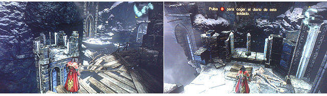 ---Al comienzo tras bajar del mecanismo con "Llave de Mazmorra•, saltando usando las Alas Demoníacas llegamos hasta una torre, hay Caballero con un Diario (Maldición del "Patoso" Leonard)