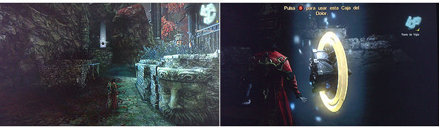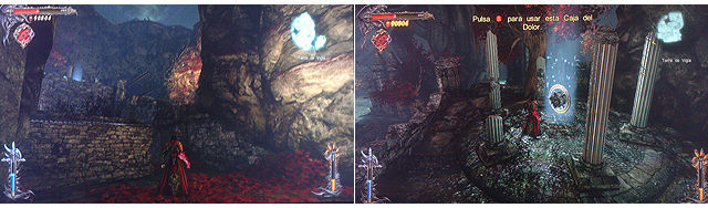 --- Caja de Dolor 10 - Gema de Vida . Cerca de donde activamos el mecanismo que abre la puerta para huir de la zona donde nos persigue Agreus, la vemos sobre una roca, necesitamos las Alas Demoníacas
