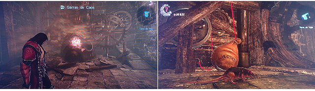 Bien, pasar por esta Caja es necesario si o si, donde la cogemos hay una zona oscura para convertirse en Rata (el mecanismo al lado del escenario no funciona sin energía), nos convertimos y salimos otra vez a la sala , al otro lado de la palanca, a la izquierda del escenario podemos pasar por una rejilla, entramos a una sala con una Fuente de Magia, una zona oscura y el mecanismo que hay que activar usando las Garras de Caos, lo activamos volvemos a hacernos rata y subimos por el pequeño pasillito que hay a la derecha del mecanismo que hemos activado, llegamos un pasillo con émbolos que hay que evitar, lo cruzamos y mordisqueamos las cuerdas para poder continuar, ahora con la energía restaurada ya podemos activar el mecanismo del Teatro.