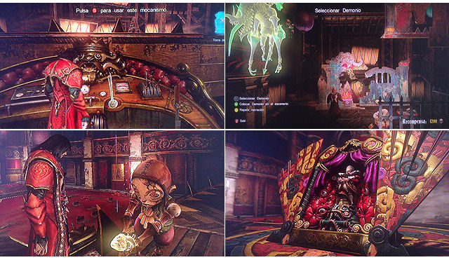 Tras eliminar a Agreus volvemos para reunirnos con Trevor en el Castillo, en el camino de vuelta nos atacan arpías, Trevor nos pide que recuperemos los fragmentos del espejo, ahora la otra puerta enfrente de por la que fuimos hacia el jardín, esta abierta, tiene un mecanismo en el medio, al activarlo se irán levantando las cortinas y salen blancos que hay que disparar con las Dagas de Sombra, podemos conseguir hasta 4 rondas, en las 2 primeras dan puntos para gastar y en las 2 siguientes Reliquias, en la última nos dan todas las reliquias, bien cuando hayamos recogido todos los premios continuamos por la puerta que se nos abre hacia el Teatro del Juguetero.