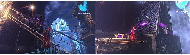 --Caja de Dolor 5 - Gema de Caos. Subiendo por la izquierda de donde tenemos la señal violeta, llegamos hasta lo alto de una vidriera donde encontramos otra caja.