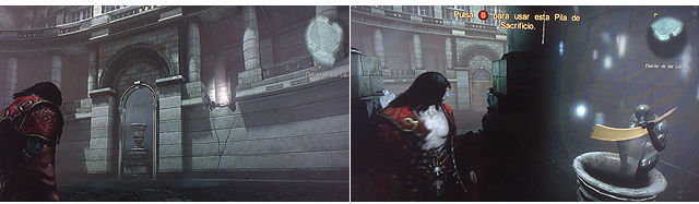 --Pila del Sacrifio, en la sala donde hay símbolos rojos y luchamos contra Victor Belmont, subimos por los enganches de la derecha, saltamos al otro lado con las Alas Demoníacas y la encontramos,