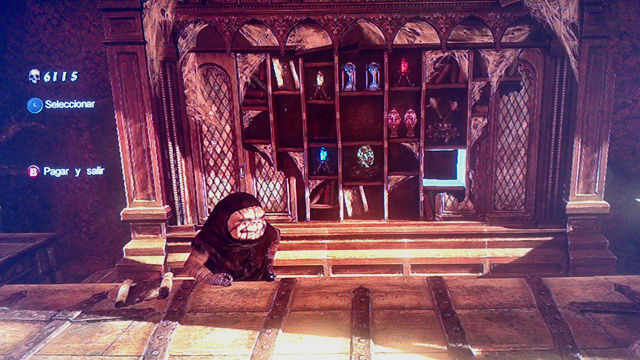 La encontramos en el Capítulo 2, en la zona Ciudad de los Condenados tras liberarle, solo esta disponible en esta zona del castillo, así que siempre que queramos visitarla tendremos que volver aquí, aparte de los objetos en venta, a la izquierda del mostrador esta el Espejo por el cual accedemos a los Desafíos de Kleidos.