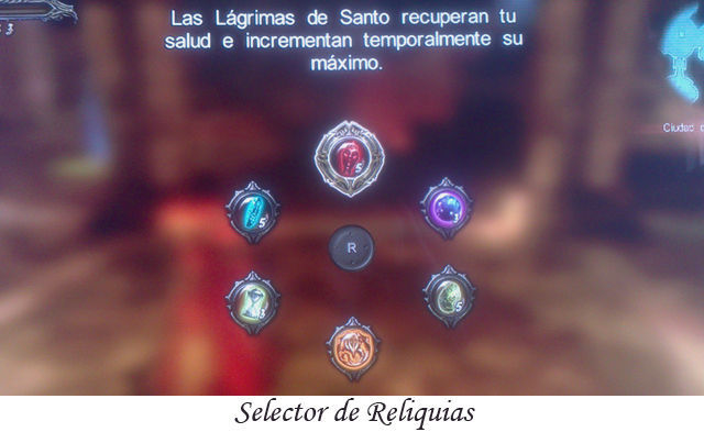 Las reliquias son objetos que recogemos rompiendo mobiliario de los escenarios o derrotando enemigos, también se pueden comprar en la Tienda del Chupacabras, al mantener pulsado abajo en la Cruceta, accedemos al menú de Reliquias y seleccionamos cuál asignamos, teniendo la Reliquia seleccionada pulsamos RT para consumirla, en un principio podemos llevar 3 de cada una (excepto el Talismán del Dragón, la más poderosa) pero recogiendo Pilas del Sacrificio iremos aumentando su número hasta 5 en todas, nos vienen muy bien en las batallas contra enemigos finales o para tener superioridad en combate contra enemigos normales.