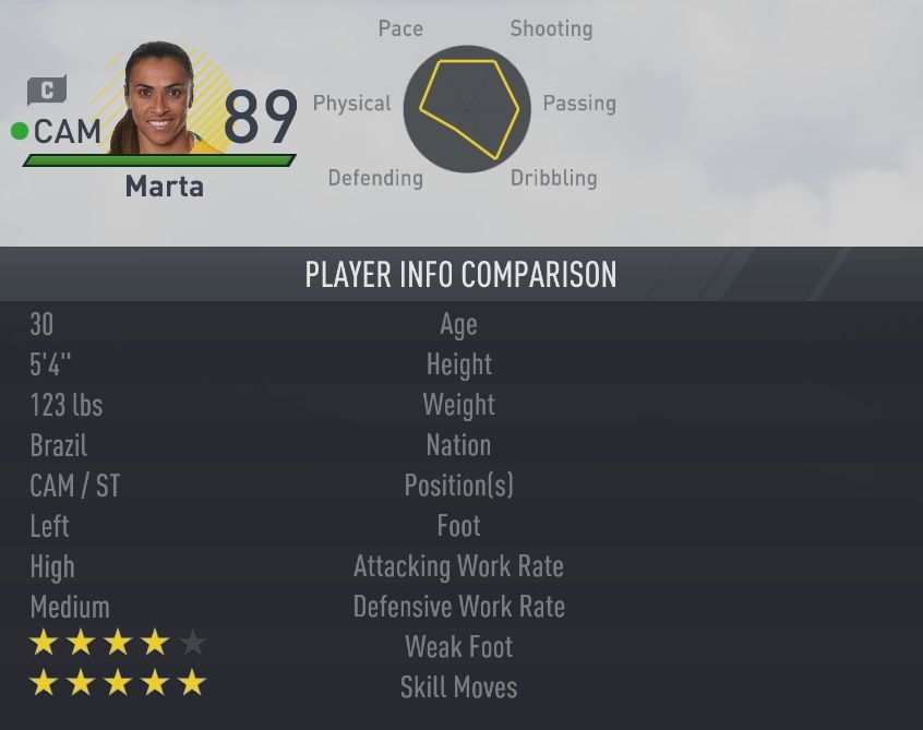 El fútbol femenino vuelve a estar presente en FIFA 17. Ésta es la lista de las mejores jugadoras que hay en el juego, entre las que no se encuentra ninguna española.