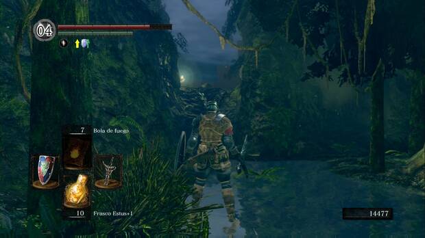 Al llegar a una zona más amplia te atacarán varios árboles, cuidado con el acantilado. Hay una Gran alma guerrero anónimo tras una roca (no prestes atención al objeto al otro lado del acantilado, no llegas). Sigue avanzando y no tardarás en ver una luz.