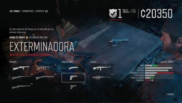 - M40/MG45: el M40 es un fusil de francotirador que se puede conseguir muy pronto y ofrece una potencia bastante decente para eliminar enemigos en sigilo. La MG45, aunque para comprarse requiere subir a nivel 3 el campamento Hot Springs, se puede conseguir de enemigos pesados que encontraremos mucho antes, y es una buena alternativa si eres de encuentros más cercanos.