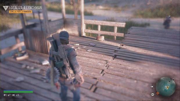 Nuestro objetivo no va a estar demasiado lejos, tan solo tienes que acercarte a la orilla norte del pantano que rodea el campamento para dar con el punto de inicio de la cacería del ladrón de semillas. Al llegar, el tipo no estará en su casa y debes examinar una mochila junto a la barandilla.
