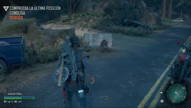 Cuando comience, se marcará en tu mapa, relativamente cerca del campamento, al este, una zona de búsqueda. Cuando estés por la zona, como siempre, busca el punto en el que, al mirar, el mando vibra. Esto te señala lo que estás buscando: un cadáver apoyado contra una barrera de hormigón.