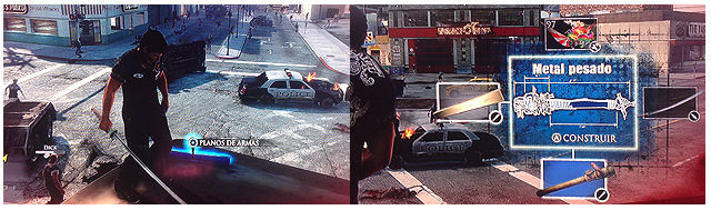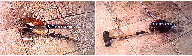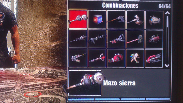 El primer arma combinada que creamos, por una lado lleva una maza y por el otro una sierra de cemento, con X golpeamos con el lado de la maza y con el Y un golpe circular con la sierra.