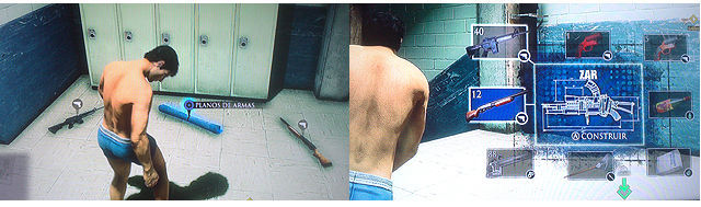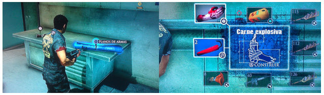 Carne con dinamita, con x damos golpes normales poco efectivos, con Y la pegamos a un zombi, apuntando podemos lanzarla, lo bueno de este arma esque atrae a todos los zombis de alrededor por su carne.