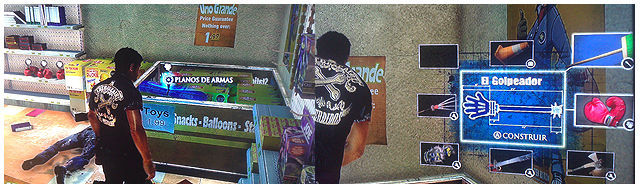 Dos manoplas con palos para abofetear a los zombis, con Y les explotamos la cabeza dándole con ambas a la vez.