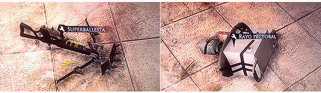 Estos guantes producen electricidad, con X dan puñetazos eléctricos con Y un calambrazo con ambas manos y lo mejor es que si apuntamos y disparamos, lanzan rayos continuamente con poca distancia pero muy efectivos (como en Star Wars).