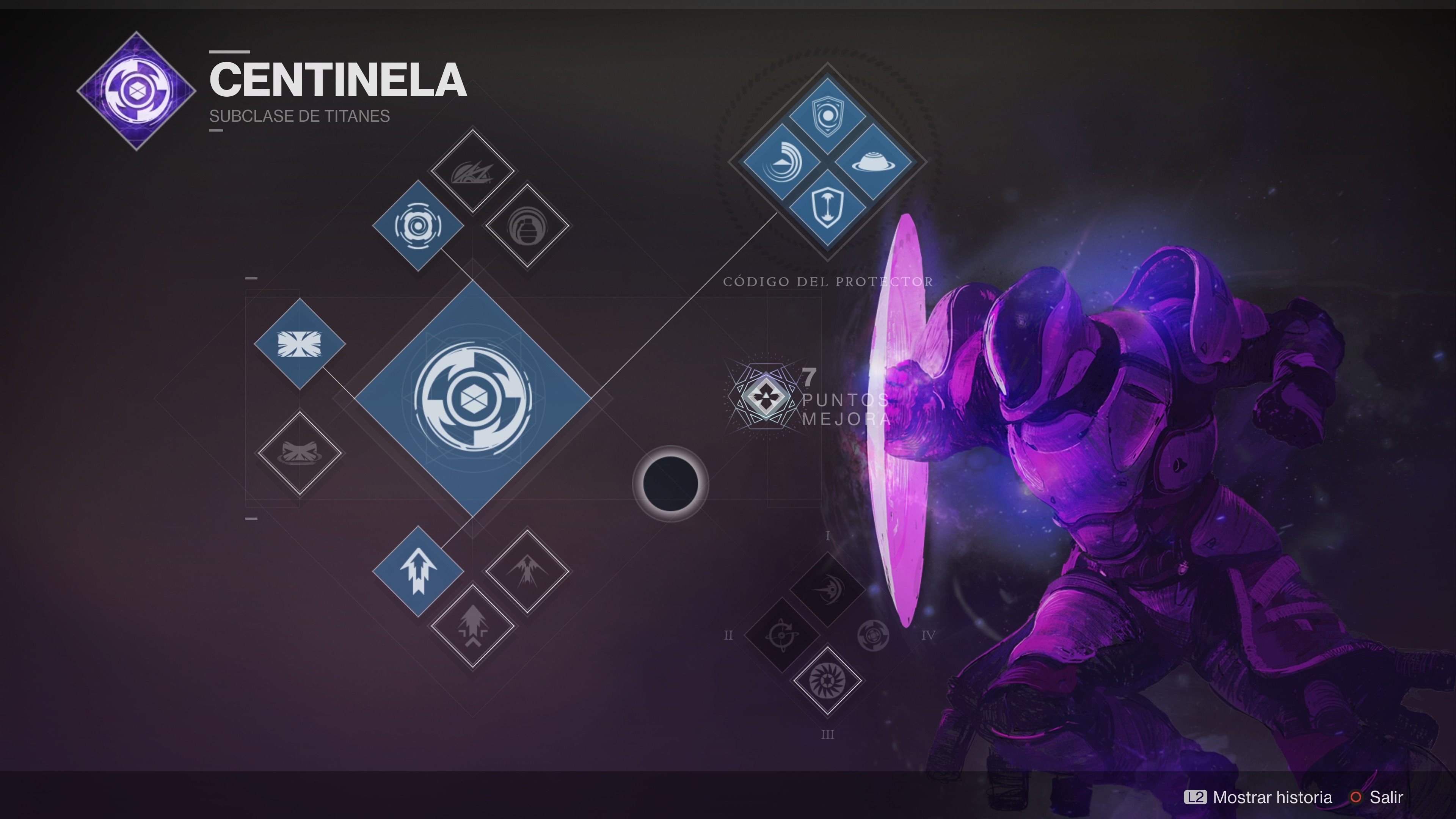 Cada subclase tiene una serie de habilidades que tenemos que ir desbloqueando con puntos de mejora, que se obtienen cada vez que subimos de nivel. Estas son todas las mejoras que podemos desbloquear para la subclase Centinela.