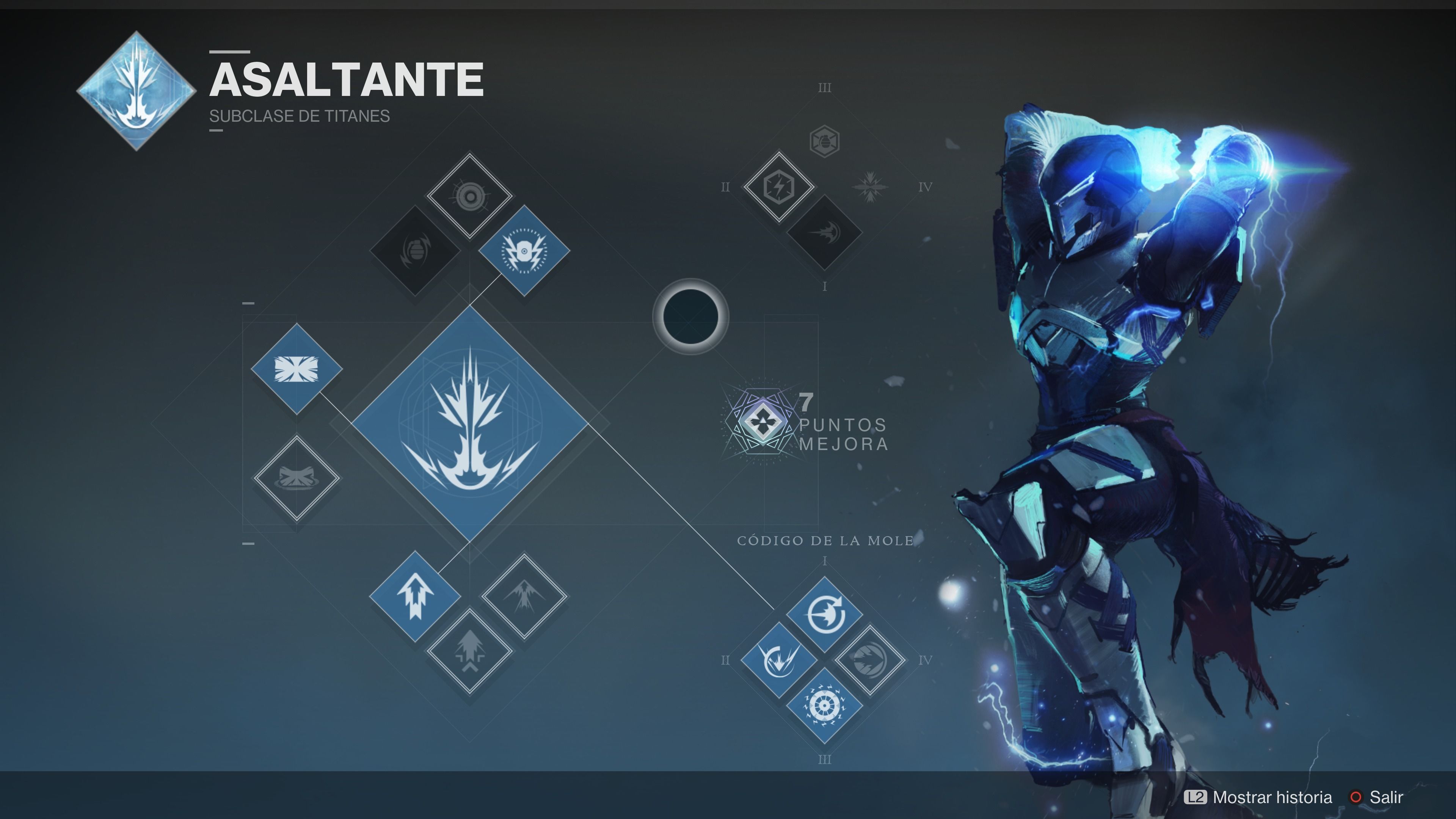 Código de la mole: un golpe cuerpo a cuerpo que se ejecuta con R1/RB, solo podemos llevar equipada a la vez una de las dos sendas, aunque sí podemos tener activas las cuatro mejoras de cada senda, que son las siguientes: