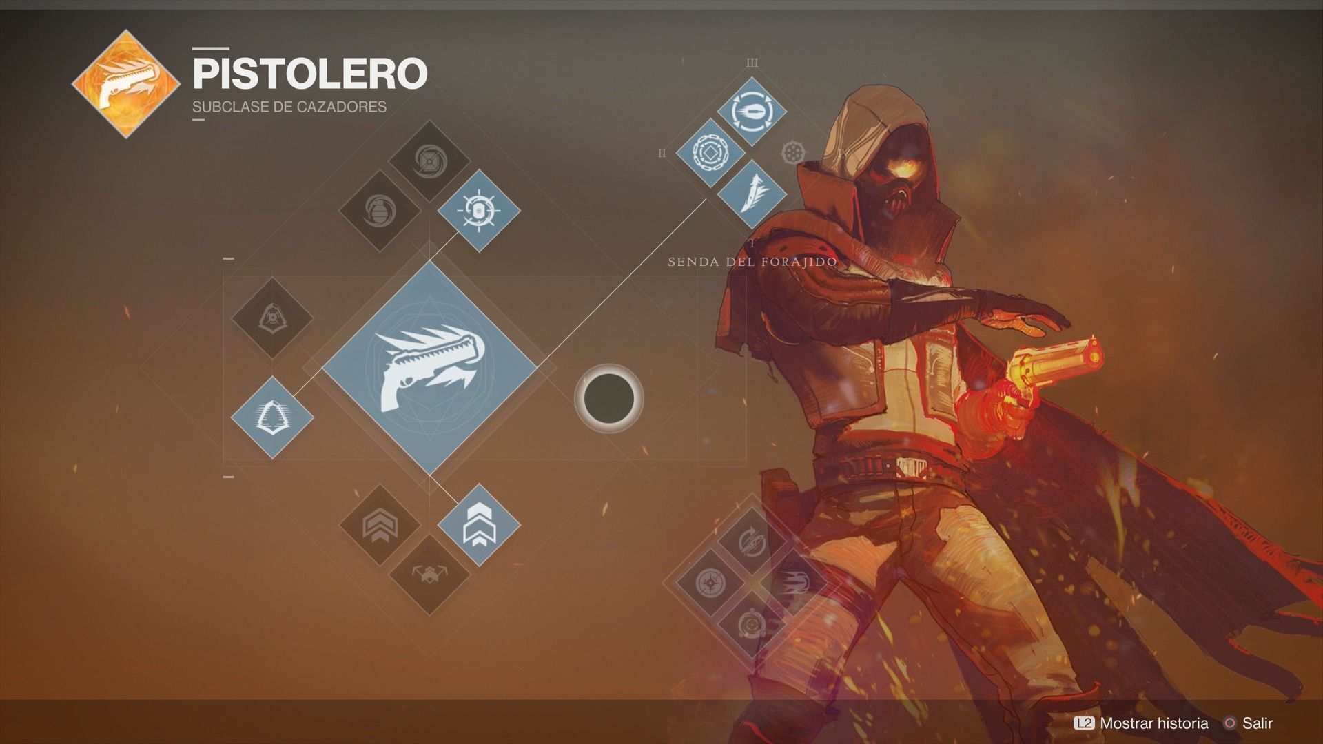 Cada subclase tiene una serie de habilidades que tenemos que ir desbloqueando con puntos de mejora, que se obtienen cada vez que subimos de nivel. Estas son todas las mejoras que podemos desbloquear para la subclase Pistolero.